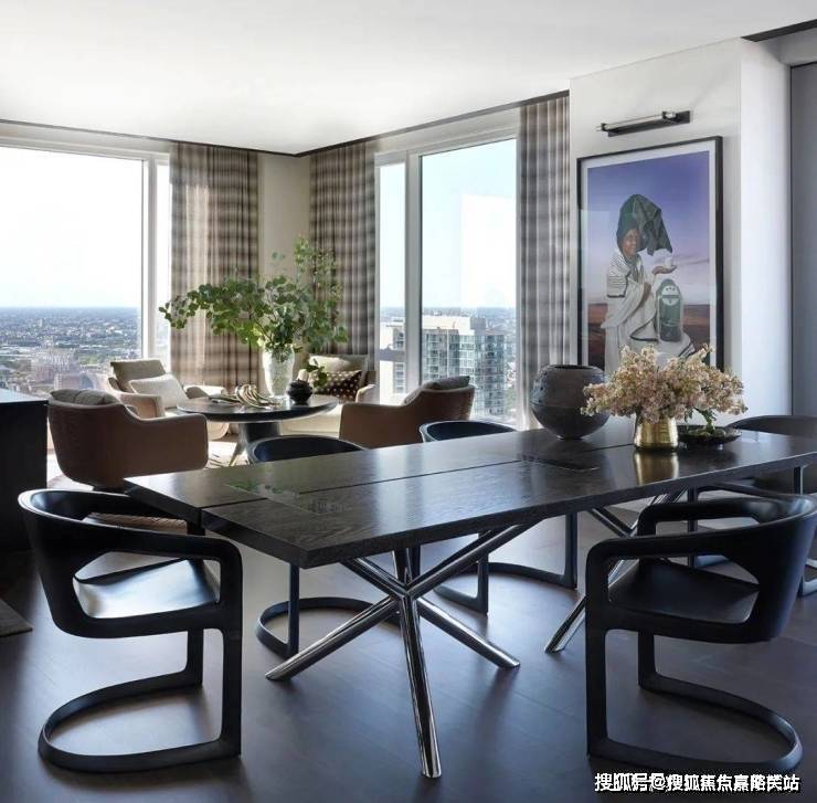 在宽敞的落地窗边安放休闲餐桌椅,俯瞰整个城市美丽景色的同时也让心情得到洗涤.